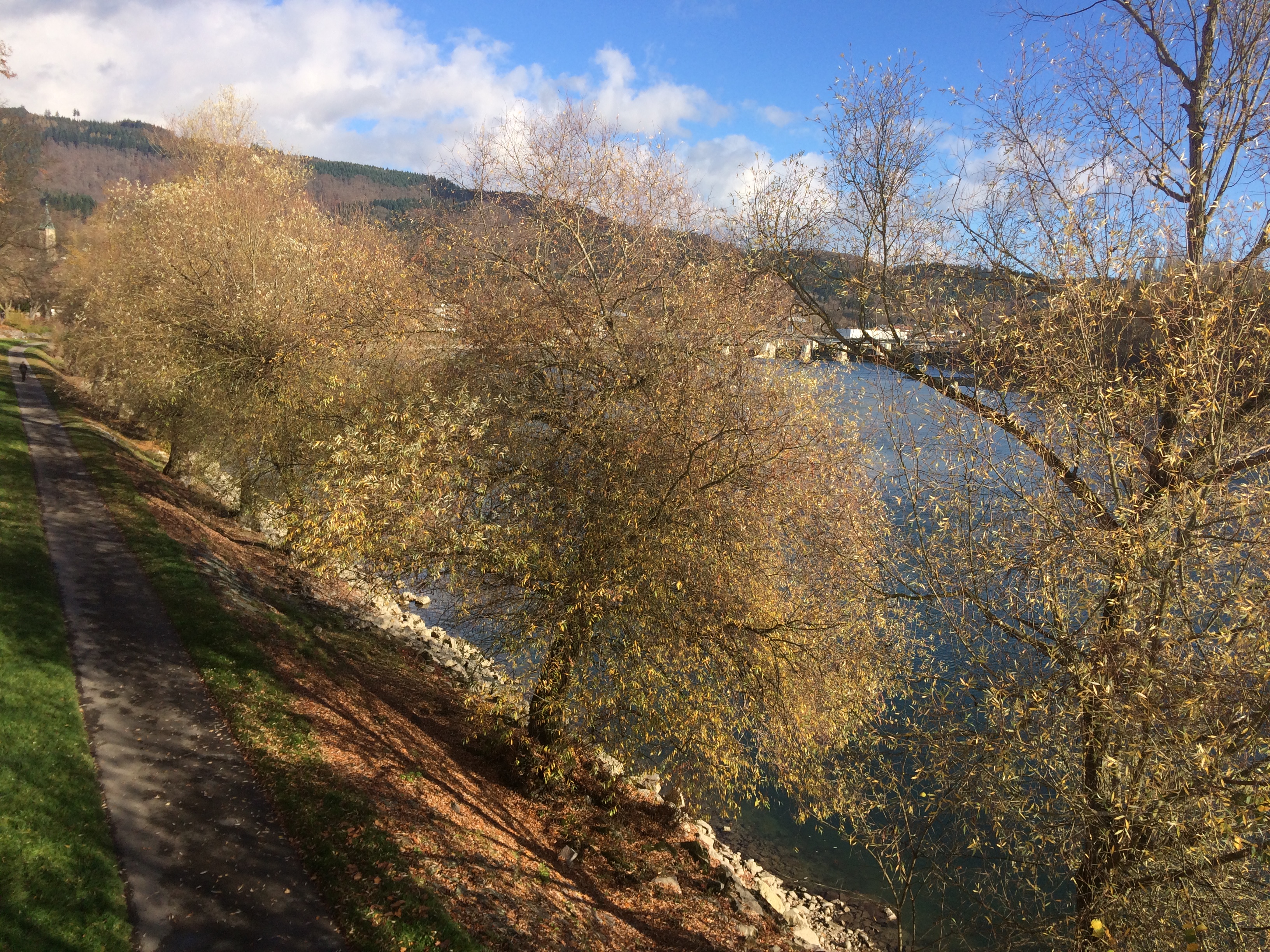But then came the river (Rhine), a charming wooden bridge, a church in the distance.. and a smile on my face 🙂